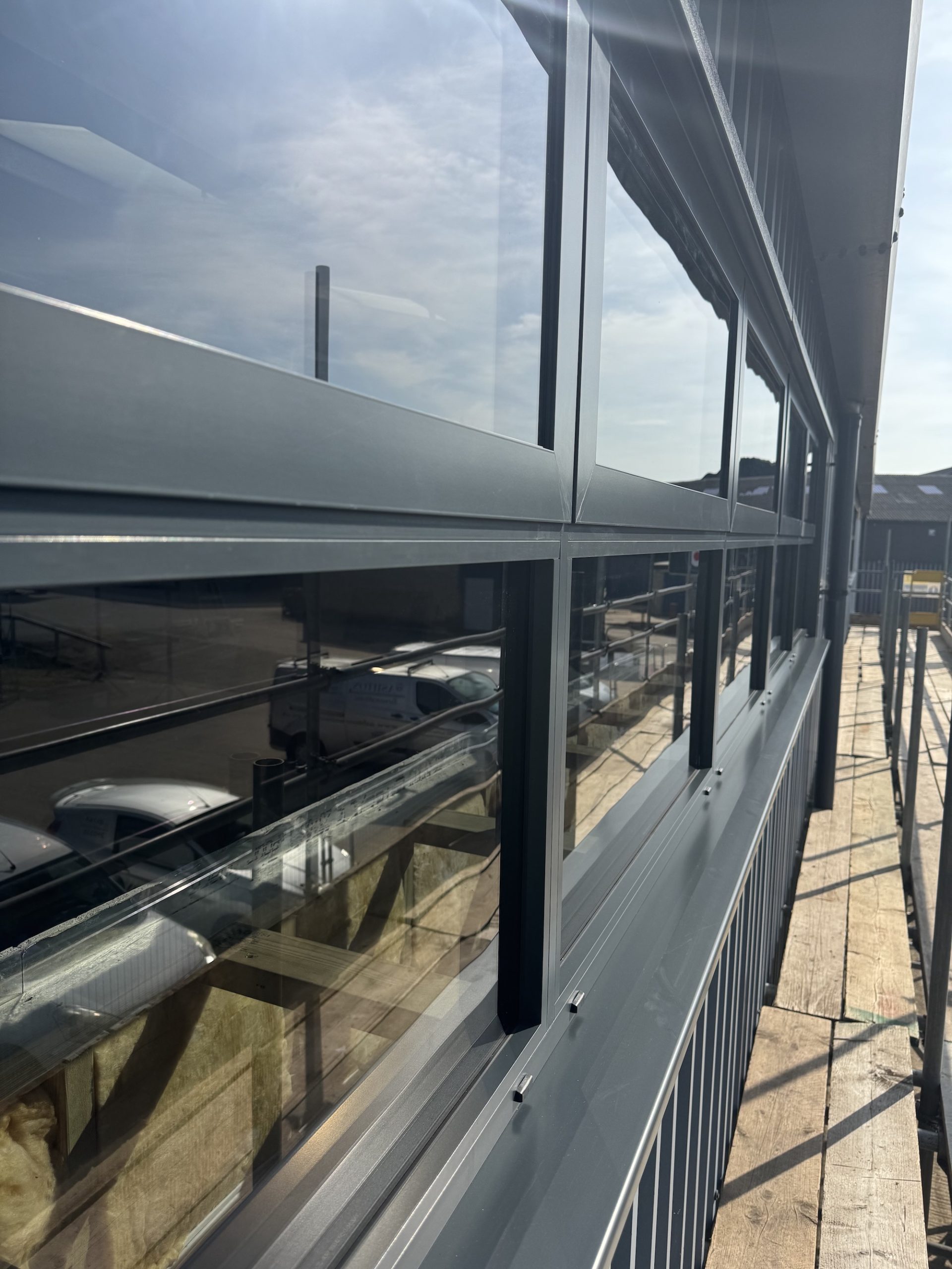 Externally, new aluminium windows were fitted to the entire façade of the office area with the required structural alterations carried out and adjustments to existing cladding to ensure all works were secure and in keeping with the existing look of the barn.